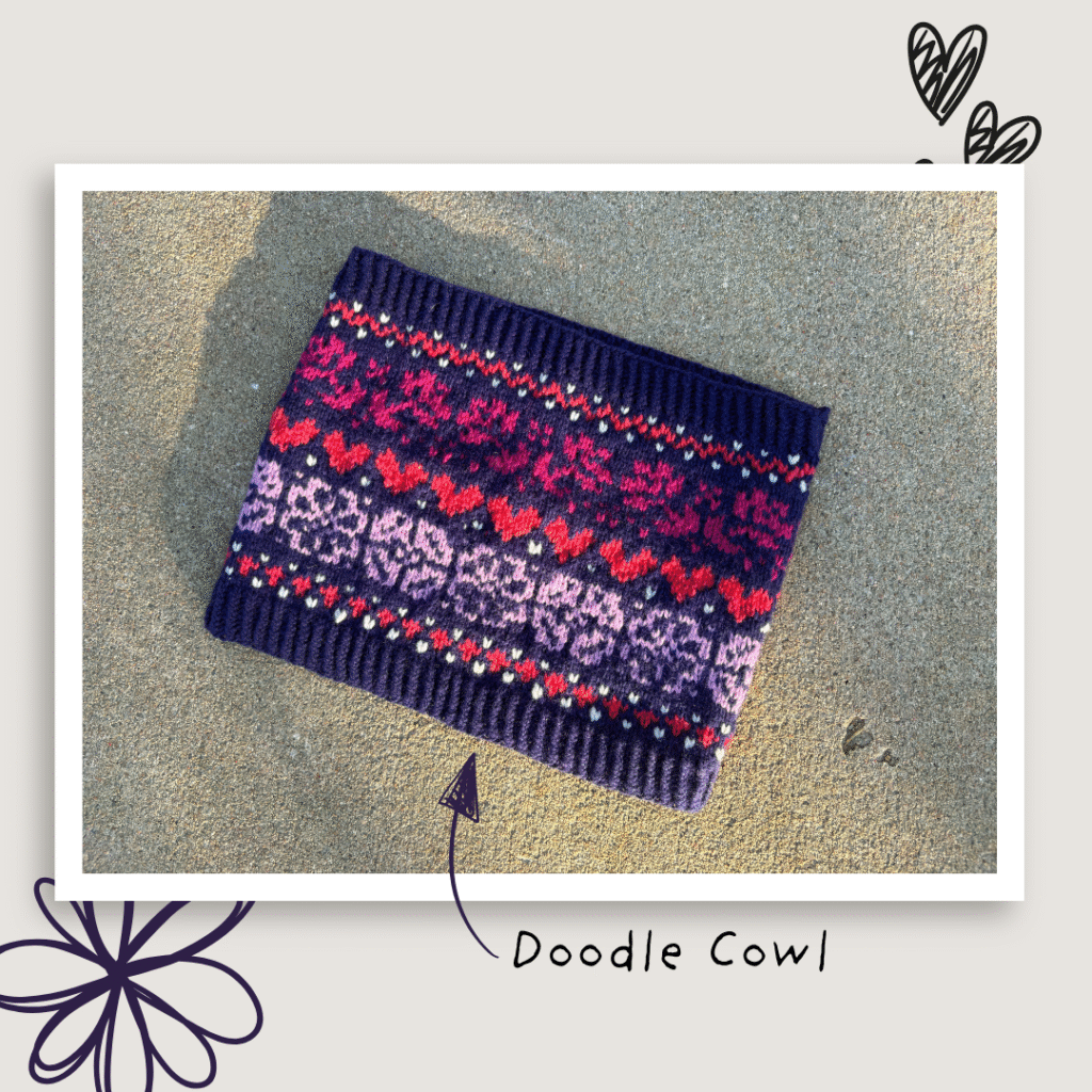 Doodle Cowl in O-Wool Classic 2-Ply scraps: I am so happy with how this little cowl turned out! It was really fun to design and see how the patterns came out as I worked the charts. I didn’t expect it, but I still have enough of almost all these yarns to knit another small something. I am learning toward making a matching hat.